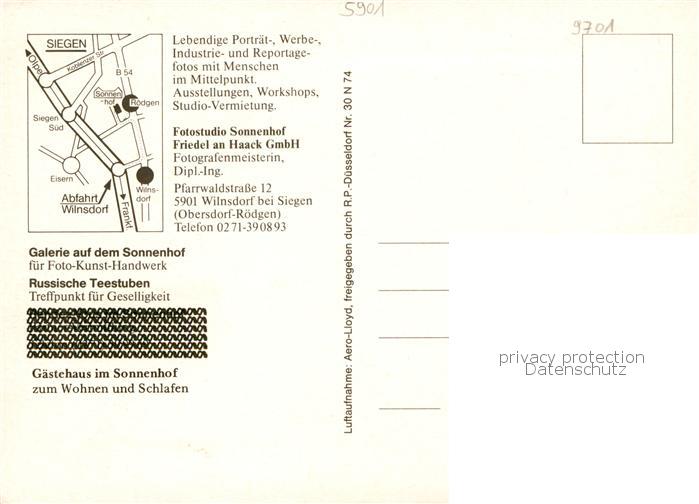 73863248 Wilnsdorf-Wilgersdorf Fotostudio Sonnenhof postalisch nicht gelaufen Fliegeraufnahme Erhaltung siehe scans [FriedD77] KatCode: 11110005970044