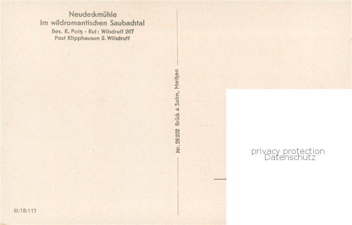 73753460 Wilsdruff Neudeckmuehle im Saubachtal Wasserfall postalisch nicht gelaufen Erhaltung siehe scans [FriedD77] KatCode: 11110014290450