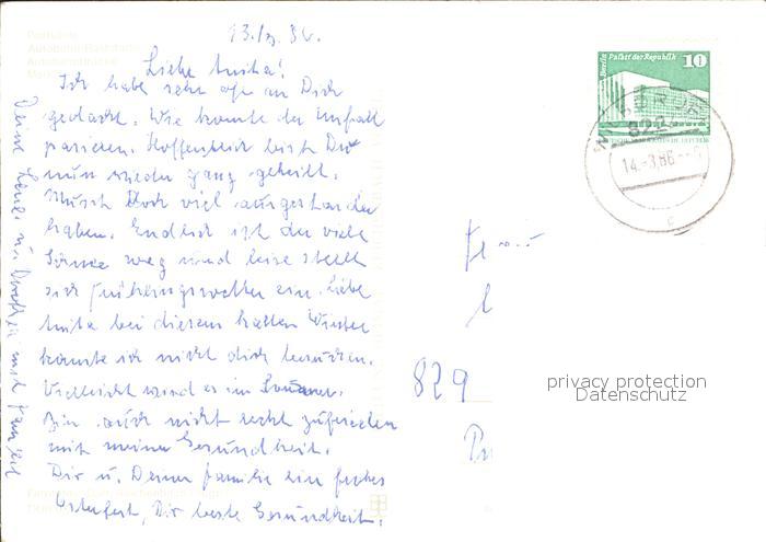 72368066 alte Postkarte Wilsdruff Postsaeule Autobahn Raststaette Autobahnbruecke Markt postalisch gelaufen Erhaltung siehe scans KatCode: 11110014290450