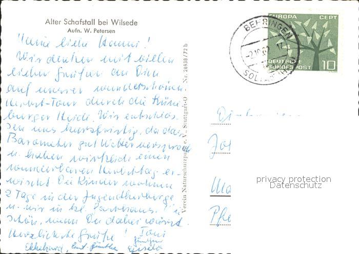 72186786 alte Postkarte Wilsede Lueneburger Heide alter Schafstall mit Schafen postalisch gelaufen Erhaltung siehe scans KatCode: 11110003358002