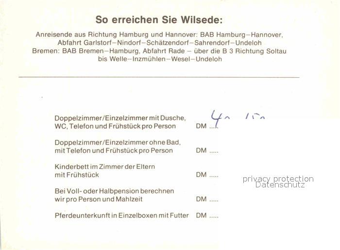 72712302 Wilsede Lueneburger Heide Hotel Restaurant Pferdehof postalisch nicht gelaufen Werbekarte (keine Postkarte) Erhaltung siehe scans [FriedD77] KatCode: 11110003358002