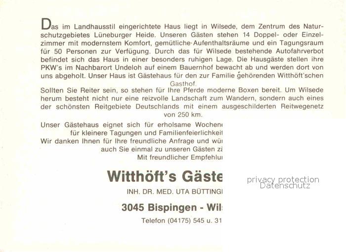 72679755 Wilsede Lueneburger Heide Witthoeft’s Gaestehaus Landhaus Naturschutzgebiet postalisch nicht gelaufen Werbekarte (keine Postkarte) Erhaltung siehe scans [FriedD77] KatCode: 11110003358002