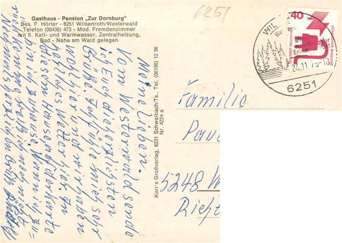 73872439 alte Postkarte Wilsenroth Dornburg Gasthaus Pension zur Dornburg postalisch gelaufen Erhaltung siehe scans [FriedD77] KatCode: 11110006533004