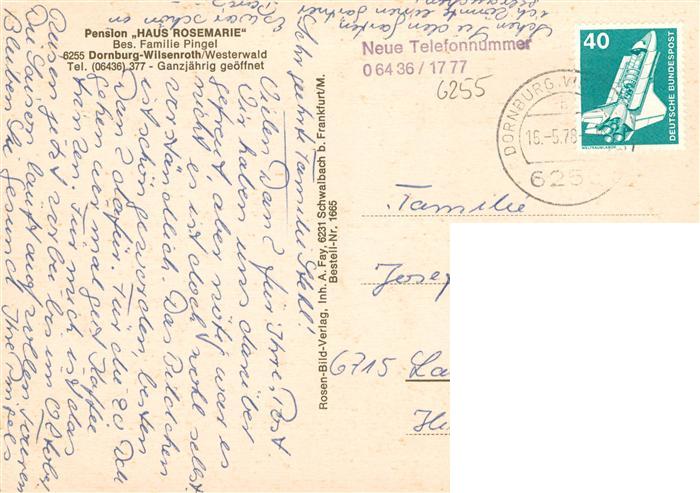 73936241 alte Postkarte Wilsenroth Dornburg Westerwald Gaestehaus Pension Haus Rosemarie postalisch gelaufen Erhaltung siehe scans [FriedD77] KatCode: 11110006533004