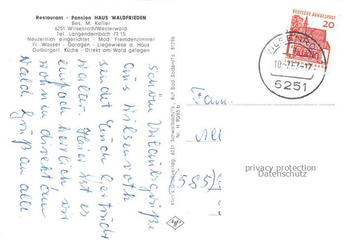 Wilsenroth Dornburg Westerwald Hessen Restaurant Haus Waldfrieden Gastraum Panorama postalisch gelaufen Erhaltung siehe scans [WerneD78] alte Postkarte Wern Katcode 11110006533004
