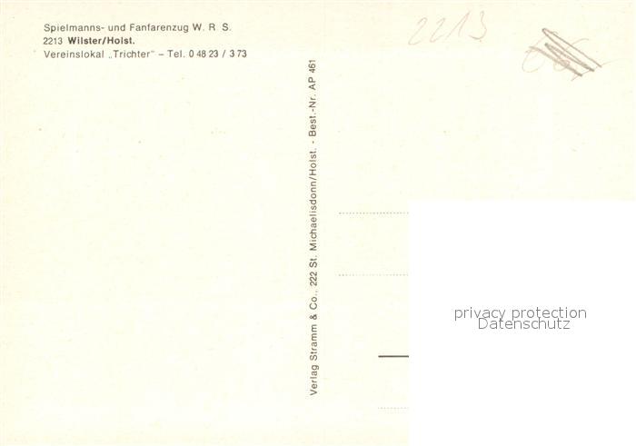 73671549 Wilster Spielmanns- und Fanfarenzug W.R.S. Vereinslokal postalisch nicht gelaufen Erhaltung siehe scans [FriedD77] KatCode: 11110001061113