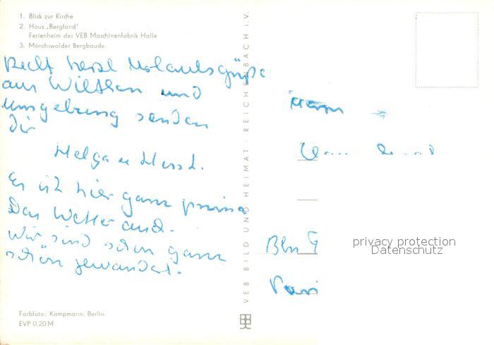 73661690 Wilthen Kirche Haus Bergland Ferienheim der VEB Maschinenfabrik Halle Moenchswalder Bergbaude postalisch nicht gelaufen Erhaltung siehe scans [FriedD77] KatCode: 11110014272390