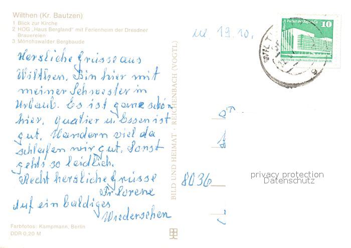 73155383 alte Postkarte Wilthen Kirche HOG Haus Bergland Moenchswalder Bergbaude postalisch gelaufen Erhaltung siehe scans [WerneD78] KatCode: 11110014272390