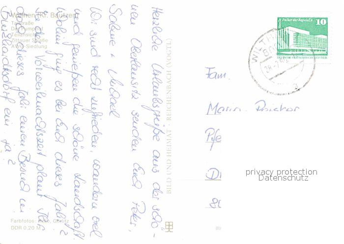 72773356 alte Postkarte Wilthen Talstr Der Pumphut Teilansicht Zittauer Str AWG Siedlung postalisch gelaufen Erhaltung siehe scans [FriedD77] KatCode: 11110014272390