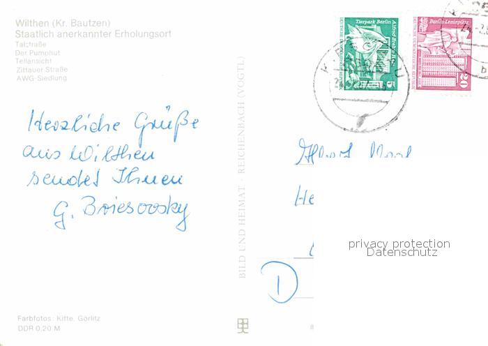 72915983 alte Postkarte Wilthen Talstrasse Pumphut Zittauer-Strasse AWG-Siedlung postalisch gelaufen Erhaltung siehe scans [LiesaD40] KatCode: 11110014272390