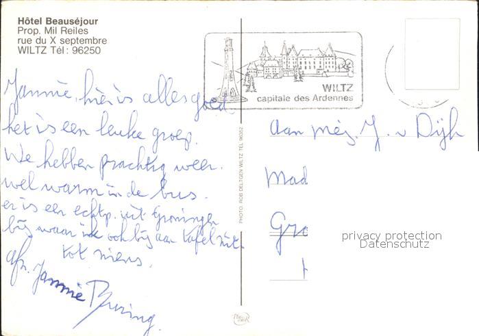 alte Postkarte Wiltz Luxembourg Hotel Restaurant Beausejour postalisch gelaufen Erhaltung siehe scans