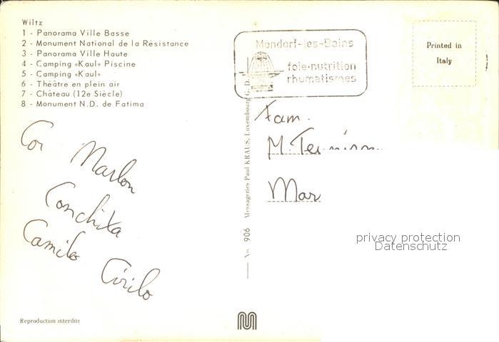 alte Postkarte Wiltz Luxembourg Monument National Camping Theatre Chateau Monument de Fatima postalisch gelaufen Erhaltung siehe scans