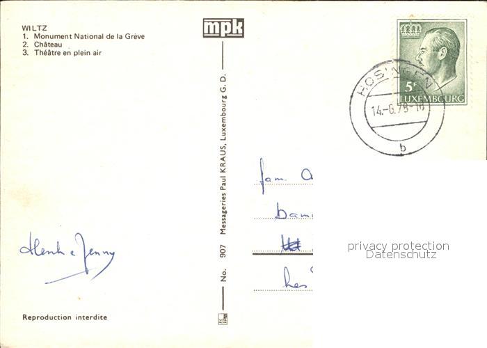 alte Postkarte Wiltz Luxembourg Monument National Greve Chateau Theatre postalisch gelaufen Erhaltung siehe scans