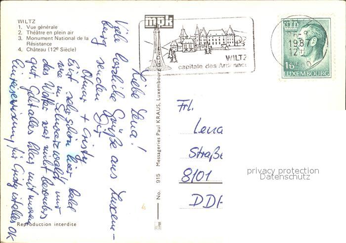 alte Postkarte Wiltz Luxembourg Panorama Denkmal Schloss postalisch gelaufen Erhaltung siehe scans [KathaD79]