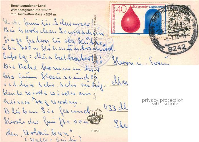 72846086 alte Postkarte Wimbachgriess Huette mit Hochkalter-Massiv postalisch gelaufen Erhaltung siehe scans [LiesaD40] KatCode: 11110009172129