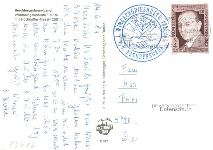 72755239 alte Postkarte Wimbachgriess Huette mit Hochkalter Massiv Berchtesgadener Alpen postalisch gelaufen Erhaltung siehe scans [FriedD77] KatCode: 11110009172129