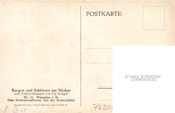 43057567 Wimpfen Bad Hohenstaufentor Kaiserpfalz Kuenstlerkarte Gustav Mandt postalisch nicht gelaufen Erhaltung siehe scans [KathaD81] KatCode: 11110008125007