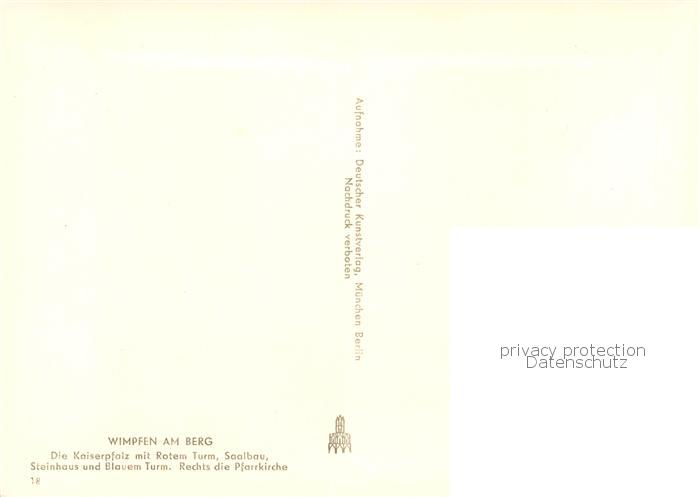 73787808 Wimpfen Bad Kaiserpfalz mit Rotem Turm Saalbau Steinhaus und Blauem Turm und Pfarrkirche postalisch nicht gelaufen Erhaltung siehe scans [WerneD78] KatCode: 11110008125007