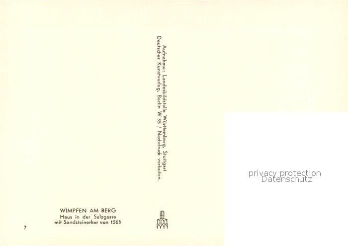 33624099 Wimpfen Haus in der Salzgasse Sandsteinerker postalisch nicht gelaufen Erhaltung siehe scans [PaolaD17] KatCode: 11110008125007