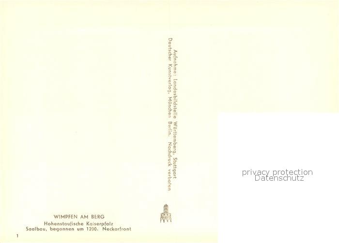 73624518 Wimpfen Hohenstaufische Kaiserpfalz Saalbau Neckarfront postalisch nicht gelaufen Erhaltung siehe scans [FriedD77] KatCode: 11110008125007