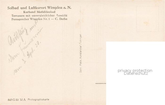 73803538 Wimpfen Kurhotel Mathildenbad postalisch nicht gelaufen Erhaltung siehe scans [FriedD77] KatCode: 11110008125007