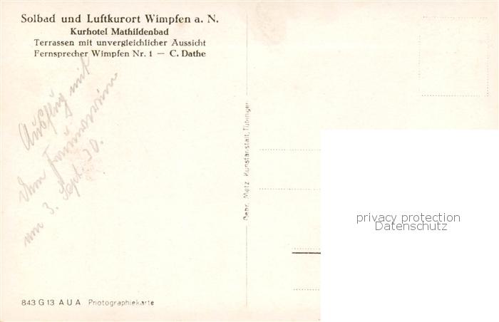 73804245 Wimpfen mit Kurhotel Mathildenbad postalisch nicht gelaufen Erhaltung siehe scans [WerneD78] KatCode: 11110008125007