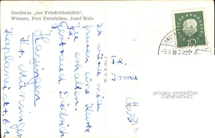 41581219 alte Postkarte Wimsen Gasthaus zur Friedrichshoehle postalisch gelaufen Erhaltung siehe scans KatCode: 11110008415034