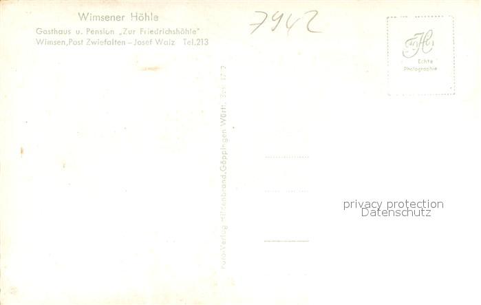 33658195 Wimsen Wimsener Hoehle Gasthaus Pension Zur Friedrichshoehle postalisch nicht gelaufen Erhaltung siehe scans [WerneD78] KatCode: 11110008415034