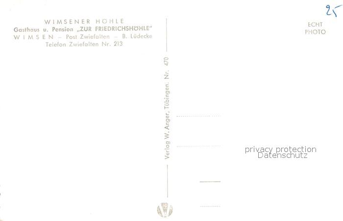 73041916 Wimsen Wimsener Hoehle postalisch nicht gelaufen Erhaltung siehe scans [PaolaD17] KatCode: 11110008415034