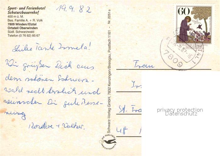 72755428 alte Postkarte Winden Elztal Sport und Ferienhotel Schwarzbauernhof Terrasse postalisch gelaufen Erhaltung siehe scans [WerneD78] KatCode: 11110008316055