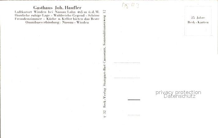 31720460 Winden Rhein-Lahn-Kreis Gasthaus Joh. Haufler postalisch nicht gelaufen Erhaltung siehe scans KatCode: 11110007141139