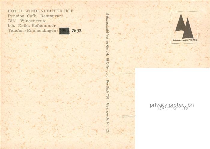73324167 Windenreute Hotel Windenreuter Hof postalisch nicht gelaufen Erhaltung siehe scans [FriedD77] KatCode: 11110008316011
