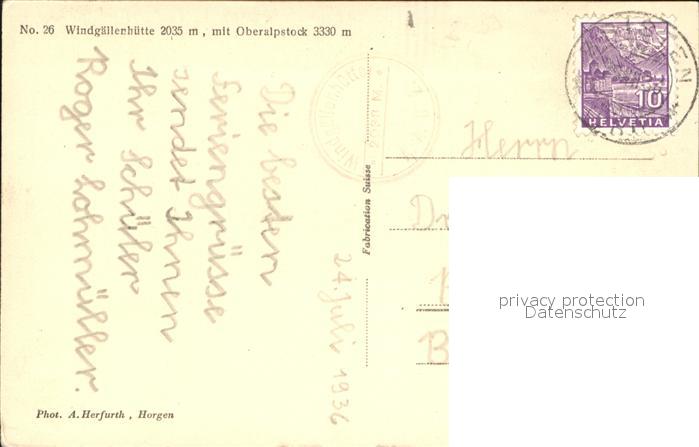 11853281 alte Postkarte Windgaellenhuette mit Oberalpstock postalisch gelaufen Erhaltung siehe scans KatCode: 11470220685218