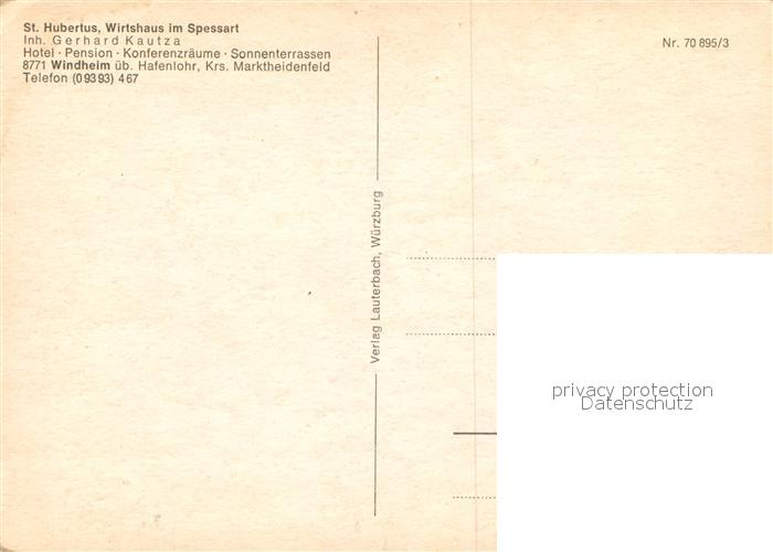 73029117 Windheim Hafenlohr Sankt Hubertus Wirtshaus im Spessart postalisch nicht gelaufen Erhaltung siehe scans [KathaD81] KatCode: 11110009677135