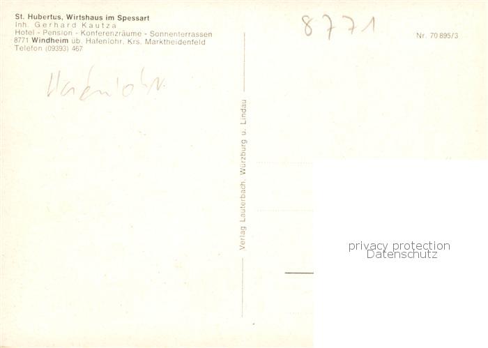 73866356 Windheim Hafenlohr St. Hubertus Wirtshaus im Spessart Gastraum Kaminzimmer postalisch nicht gelaufen Erhaltung siehe scans [FriedD77] KatCode: 11110009677135