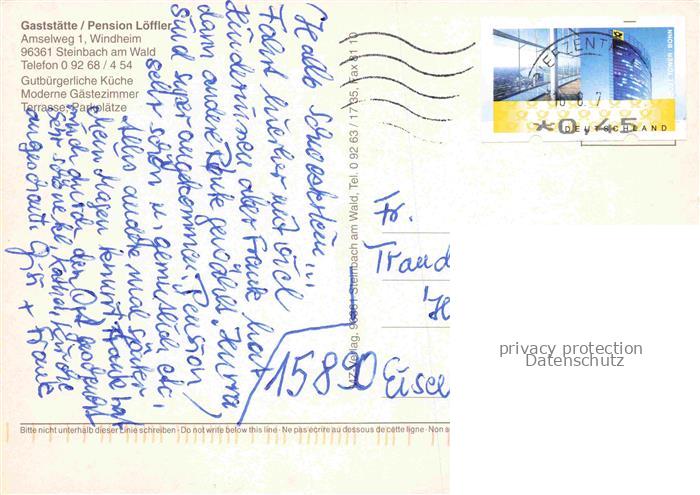 74038010 alte Postkarte Windheim Oberfranken Gaststaette Loeffler Gastraeume Terrasse Panorama postalisch gelaufen Erhaltung siehe scans [WerneD78] KatCode: 11110009476175