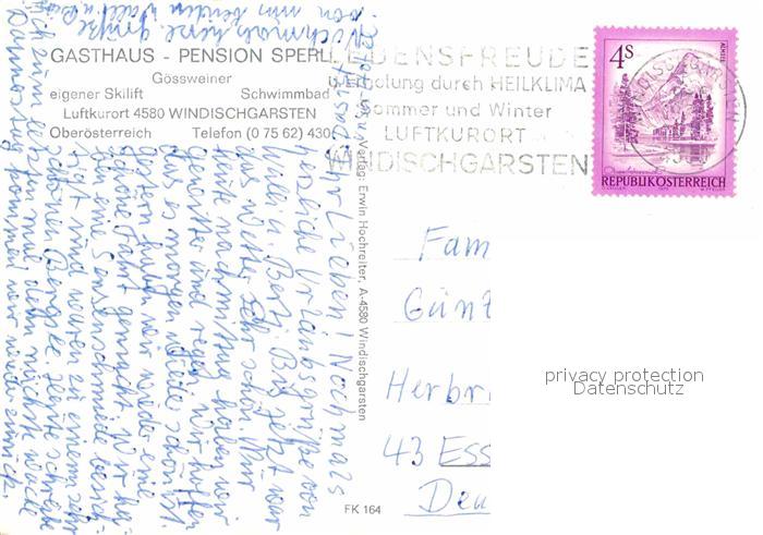 72756592 alte Postkarte Windischgarsten Gasthaus Pension Sperl postalisch gelaufen Erhaltung siehe scans [WerneD78] KatCode: 11390314040923