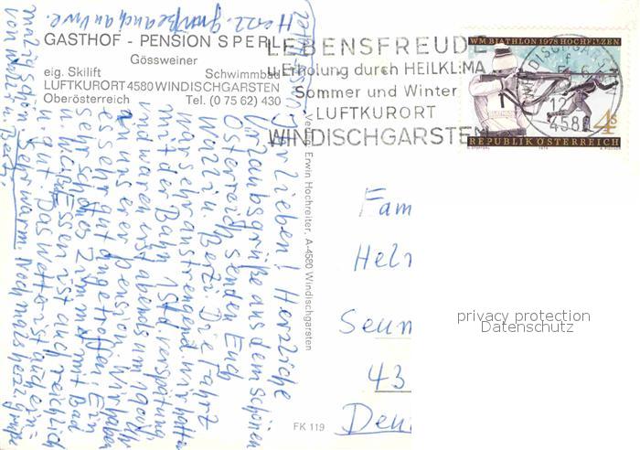 72790556 alte Postkarte Windischgarsten Gasthaus Pension Sperl postalisch gelaufen Erhaltung siehe scans [LiesaD40] KatCode: 11390314040923