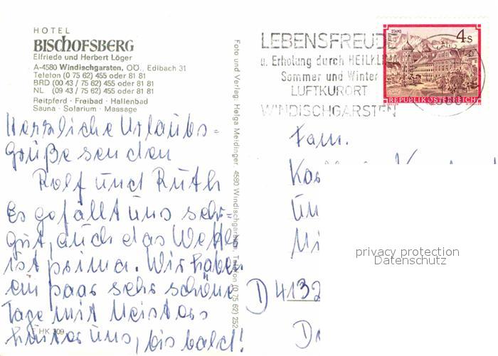 72849242 alte Postkarte Windischgarsten Hotel Bischofsberg postalisch gelaufen Erhaltung siehe scans [KathaD81] KatCode: 11390314040923