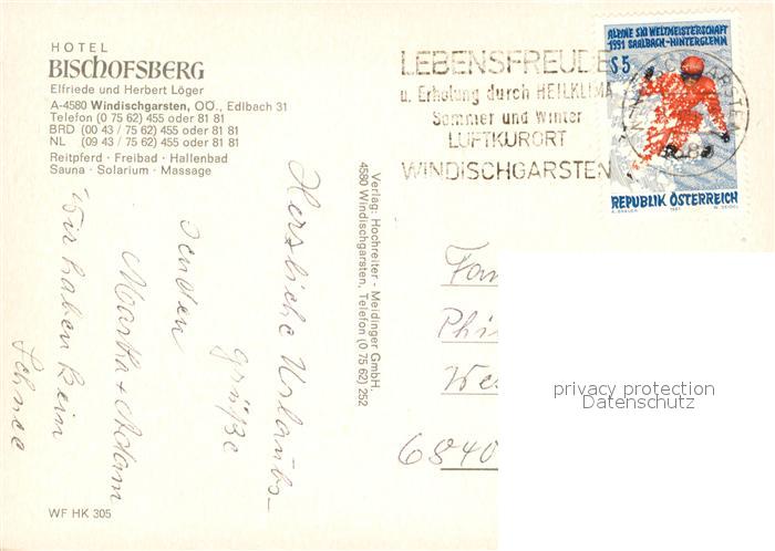 73161382 alte Postkarte Windischgarsten Hotel Bischofsberg Winterlandschaft postalisch gelaufen Erhaltung siehe scans [KathaD81] KatCode: 11390314040923