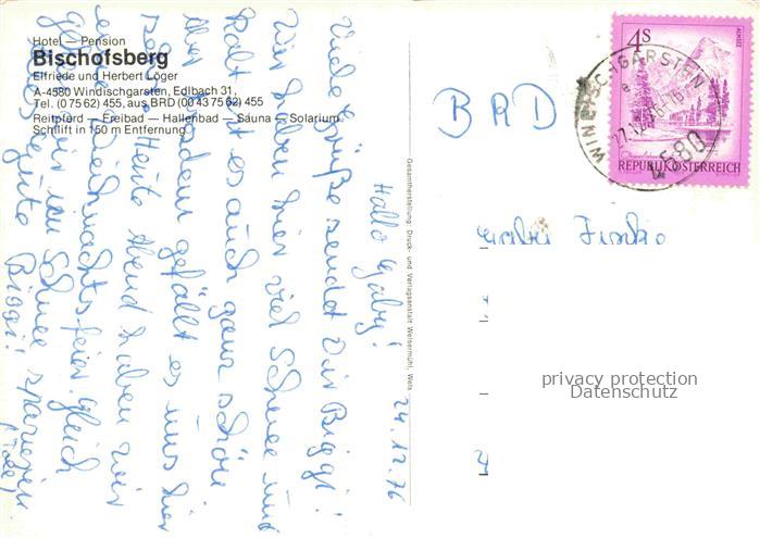 74156124 alte Postkarte Windischgarsten Kirchdorf Krems Oberoesterreich AT Winterpanorama Alpenblick Hotel Pension Bischofsberg postalisch gelaufen Erhaltung siehe scans [FriedD77] KatCode: 11390314040923