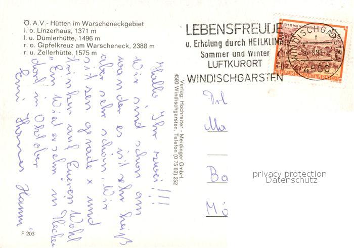 73295873 alte Postkarte Windischgarsten Linzerhaus Duemlerhuette Gipfelkreuz am Warscheneck Zellerhuette postalisch gelaufen Erhaltung siehe scans [WerneD78] KatCode: 11390314040923