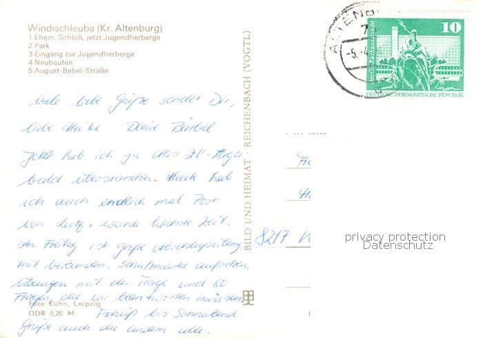 73868627 alte Postkarte Windischleuba Ehem Schloss Park Eingang zur Jugendherberge Neubauten August Bebel Strasse postalisch gelaufen Erhaltung siehe scans [WerneD78] KatCode: 11110016077052