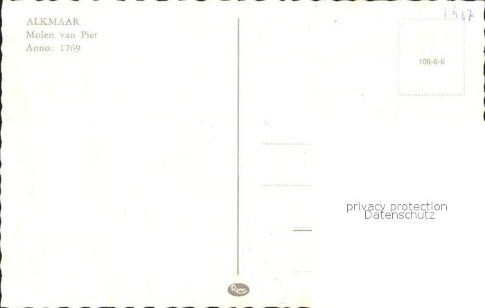 Windmuehle Alkmaar Molen van Piet postalisch nicht gelaufen Erhaltung siehe scans