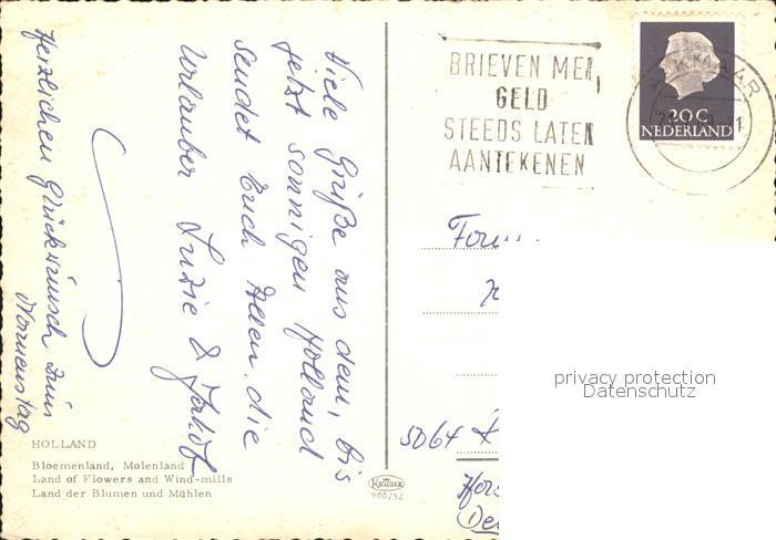 alte Postkarte Windmuehle Blumen Trachten postalisch gelaufen Erhaltung siehe scans