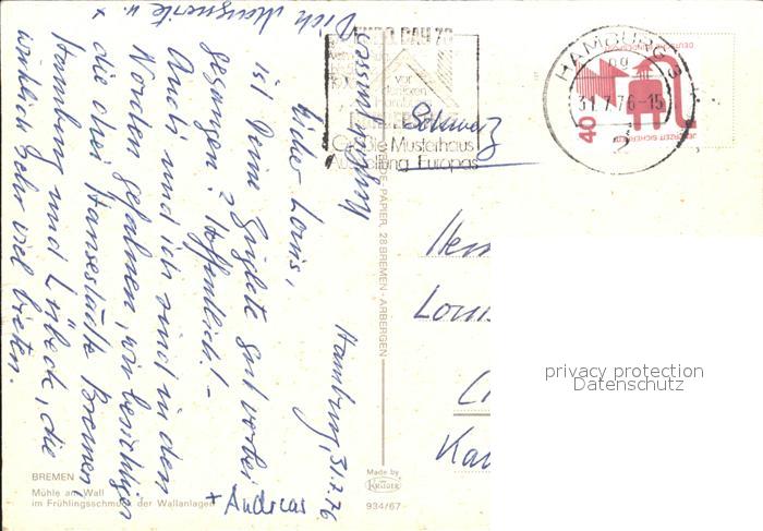 alte Postkarte Windmuehle Bremen Muehle am Wall postalisch gelaufen Erhaltung siehe scans
