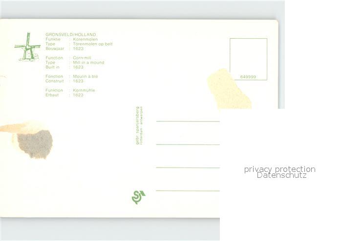 Windmuehle Gromsveld Korenmolen postalisch nicht gelaufen Erhaltung siehe scans