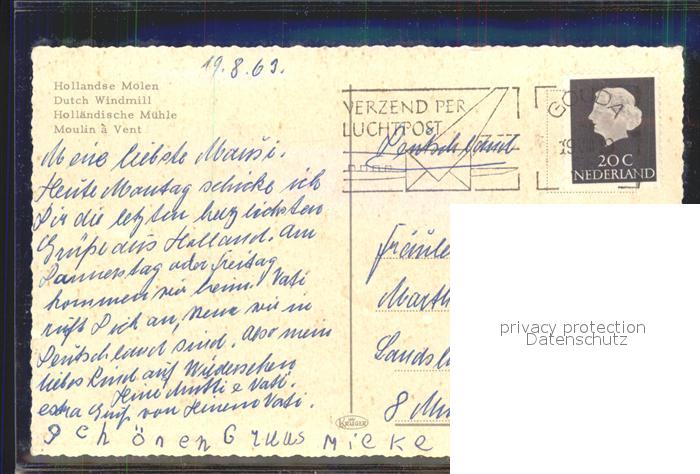 alte Postkarte Windmuehle Holland postalisch gelaufen Erhaltung siehe scans