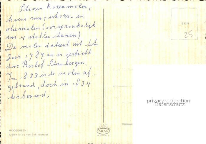 Windmuehle Hoogeveen Van Echtenstraat postalisch nicht gelaufen Erhaltung siehe scans