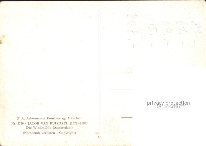 Windmuehle Jacob van Ruisdael F.-A.-Ackermann-Verlag postalisch nicht gelaufen Erhaltung siehe scans